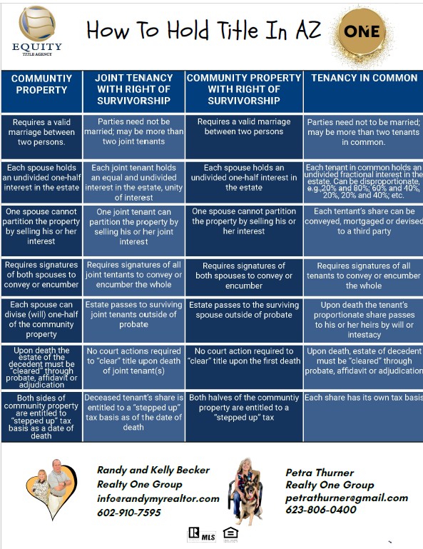 When you buy a home in Arizona, one of the most important—and sometimes overlooked—decisions you’ll make is how to hold title to your property. This decision impacts not only ownership rights but also what happens to the property in the future, including inheritance, taxes, and the ability to sell or refinance.