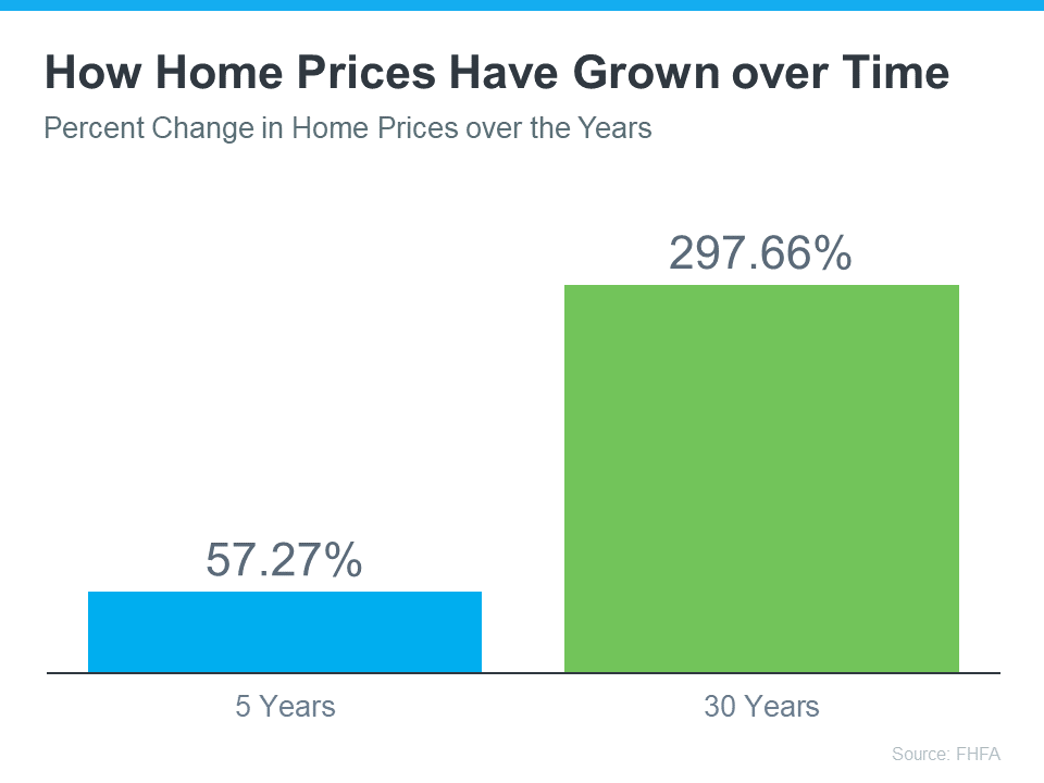 While home prices vary by area, the national average shows the typical homeowner who’s been in their house for five years saw it increase in value by nearly 60%. And the average homeowner who’s owned their home for 30 years saw it almost triple in value over that time.