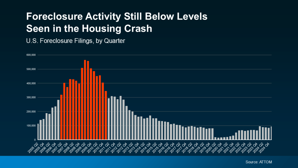 Even with the recent increase, foreclosure numbers are not at the levels seen during the 2008 crash. Plus, most homeowners today are in a much stronger equity position, even with rising costs.